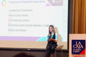 Mariela Ricciuti, presidenta de Provincia Vida, destacó la importancia de enfocarse en visibilizar y concientizar acerca de la equidad de género, además de trabajar para reducir la brecha existente. también compartió los cinco pilares que sustentan el Programa de Equidad Corporativa de Grupo Provincia y sus aseguradoras y resaltó que actualmente Provincia Vida cuenta con un 40% de mujeres ocupando puestos de alta jerarquía.